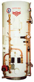 In addition to the domestic water controls, the unit is fitted with the full array of primary controls required for a sealed system. Installation of the unit simply consists of pipework connections to the boiler, radiators, mains, water outlets, and drain, with wiring to the boiler, room unit and immersion heaters. The wiring is simplified by the use of Honeywell Smartfit controls. Connection to the boiler is made from the fitted junction box, while the room unit operates on 12v and requires only two wire polarity-free connection to the Smartfit control centre. An added benefit of using a pre-fabricated Megaflo is the assurance of tidy pipework. One is always at the mercy of the installer when it comes to the way controls and pipework are arranged in a cylinder cupboard. Time on site is not cheap, and space to work is often limited. Sometimes the results are rushed & untidy. In addition, badly though out pipework can obstruct service engineers access to system components. When systems are factory assembled, the advantages of being able to design pipework layouts in advance and put them together with ample working space and the correct tools becomes clear. Components are located where service engineers can gain easy access. Pipework is straight, supported and pressure tested, with air vents and drain points located where necessary, and all wiring clamped neatly to the unit. | |||||||||||||||||||||||||||||||||||||||