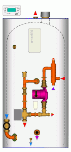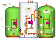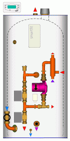 Econocyls are basically pre-fabricated hot water cylinders, ready for rapid site fixing and connection to the boiler, radiators, cold water tank, and hot water supplies. As with all the water systems we manufacture, you give us the specification, and we do the rest. The end result is guaranteed to be exactly what you want with regards to quality and performance. We can work with controls from any manufacturer, the standard being Danfoss Randall controls and Grundfos pumps. The addition of an attractive coated white steel casing makes the fixing of controls and components very solid indeed, and does wonders for the overall appearance of the cylinder cupboard. A peel off clear plastic film ensures that the good looks survive the usual paint marks and other mess on building sites. As standard, we water test all our systems, as well as performing electrical tests to ensure control operation. This ensures a minimum of site problems and service call-outs. A range of sizes are available in various diameters, covering capacities from 80 litres up to 500 litres, in grades 1 to 3. Pipework sizes from 15 up to 35mm. Electric systems provide options regarding number and type of heaters and associated controls. Gas systems offer a range of options regarding primary heat exchangers, from a British Standard coil through to plate heat exchangers. Solar options are also available. However, none of this is any good unless the prices are correct. As the manufacturers, we can offer you lower prices than a merchant or distributor. We can also offer far more options, without charging a premium. A variety of units are ex-stock, with specials usually available within a week. Simply send us your requirements and we provide you with colour drawings and a quote. As ever, we provide our customers with full consultancy support. We have been designing, manufacturing and constantly improving hot water system technologies, both domestic and commercial, for a number of years. The exceptionally diverse nature of our customers' needs and problems has given us an experience and understanding of hot water systems that other manufacturers and consultants can only dream of. We make this knowledge freely available to help solve your problems. If you would like to find out more about the range of