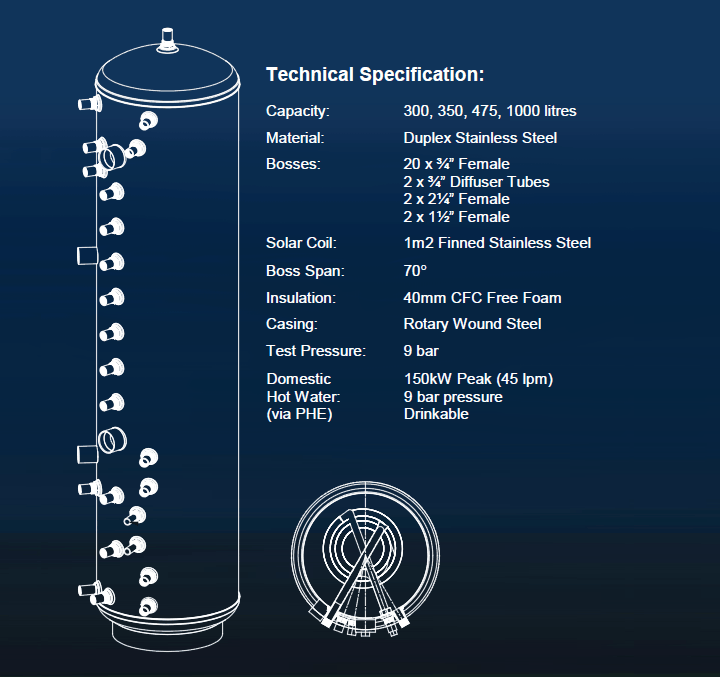 of the thermal store varies greatly, from 25°C up to 70°C, and a boiler